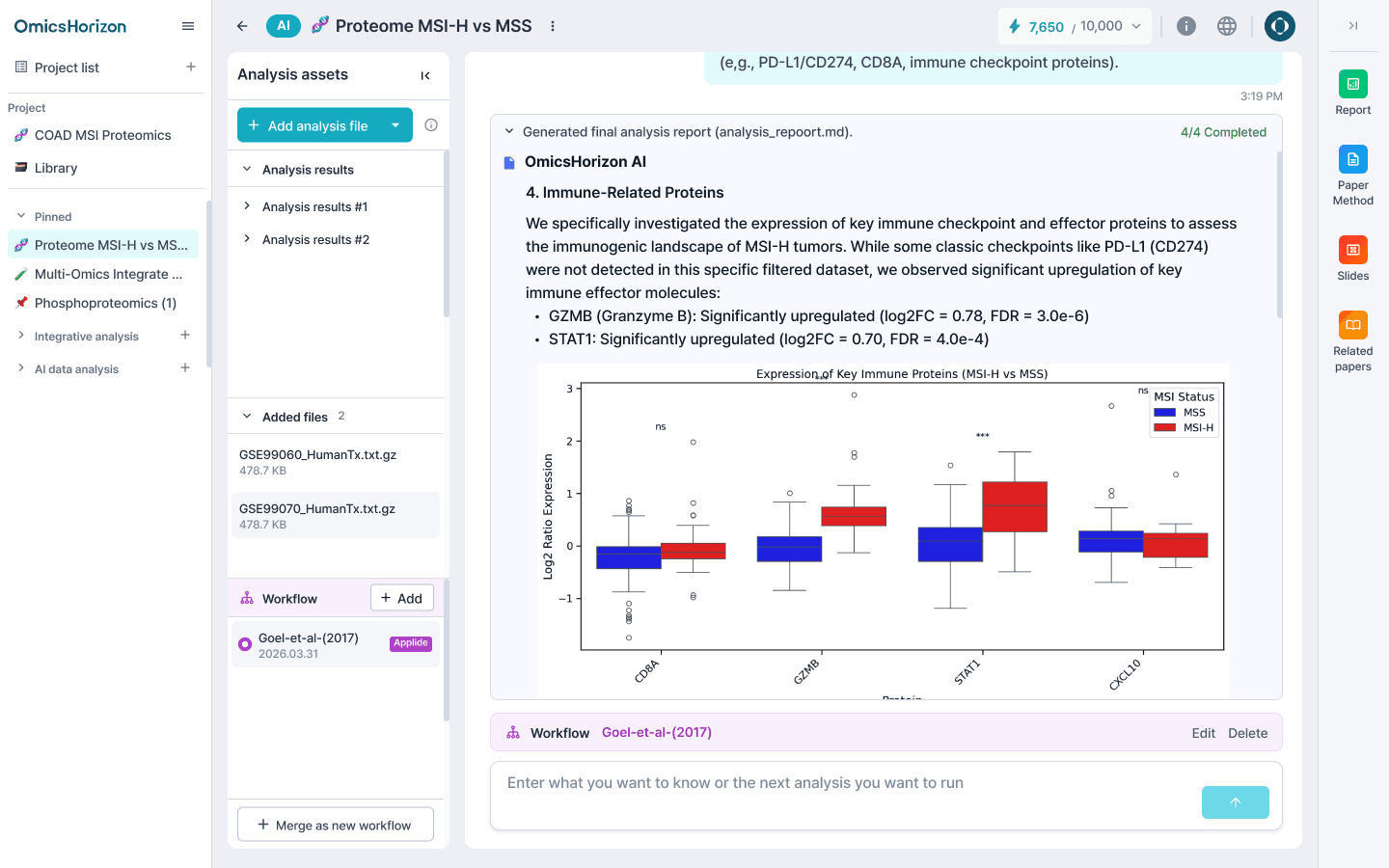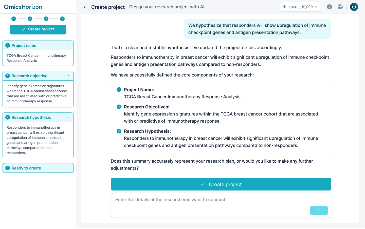 Analyze complex datasets faster and turn your research workflow into reusable assets with an AI-powered omics analysis platform.