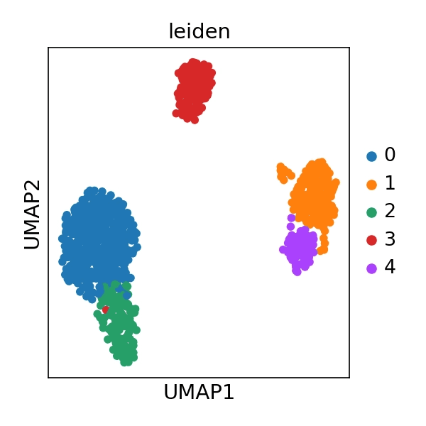 결과: 총 5개의 뚜렷한 세포 군집(Cluster 0 ~ 4)이 식별되었습니다.